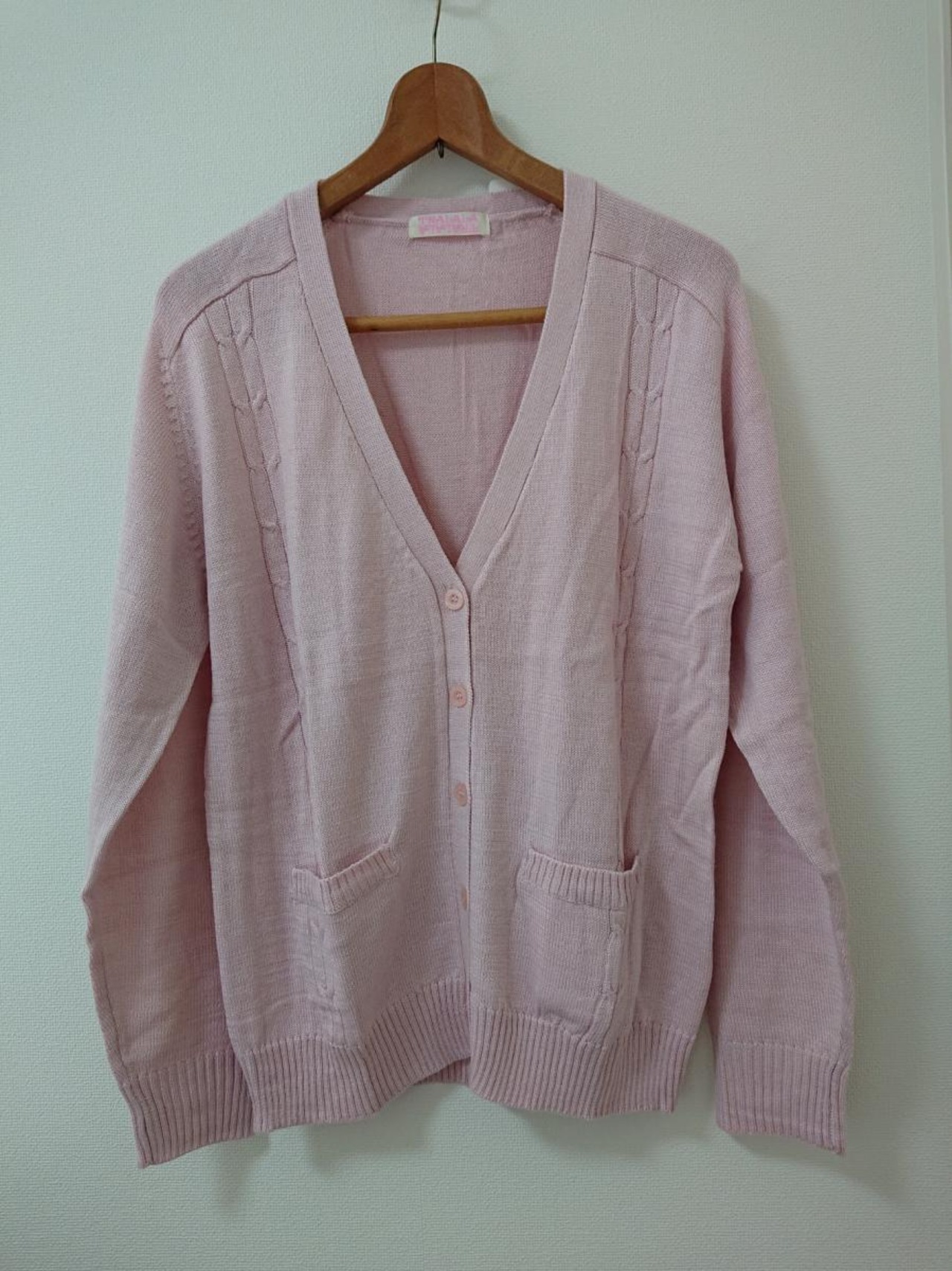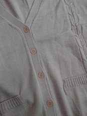 ケーブル柄の縦ラインやフロントのポケットなど、お洒落ポイントがつまったファッショナブルなカーディガンです。